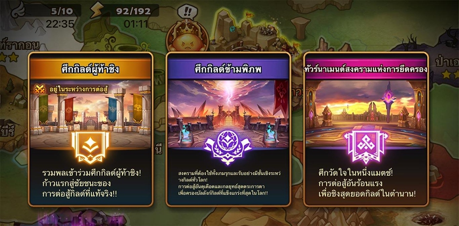 ‘ศึกล่าบอส’ คอนเท้นท์การต่อสู้แบบ PvE ที่ให้คุณร่วมมือกับสมาชิกกิลด์ รวมถึง ‘ศึกกิลด์ข้ามพิภพ’ ที่ให้บรรดากิลด์สุดแกร่งจากทั่วโลกมาสุ้กันเพื่อวัดความเป็น 1 ใน สมรภูมิอันดุเดือด!
