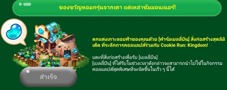 และล่าสุดกับการประกาศ Collaboration สุดปัง Summoners War x Cookie Run: Kingdom ได้เริ่มปล่อยกิจกรรมสะสม ‘เยลลี่บีน’ กันได้แล้ว แค่รับสิ่งปลูกสร้างสุดพิเศษ ‘ฟาร์มเยลลี่บีน’ จากกิจกรรม แล้วเข้ามารับทุกวันก็สามารถนำไปใช้ได้ในช่วงที่กิจกรรมตัวเต็มปล่อยในวันที่ 29 สิงหาคมนี้ !