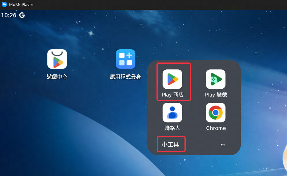 在MuMuPlayer的小工具中找到GooglePlay商店,啟動並登入你的谷歌帳號。