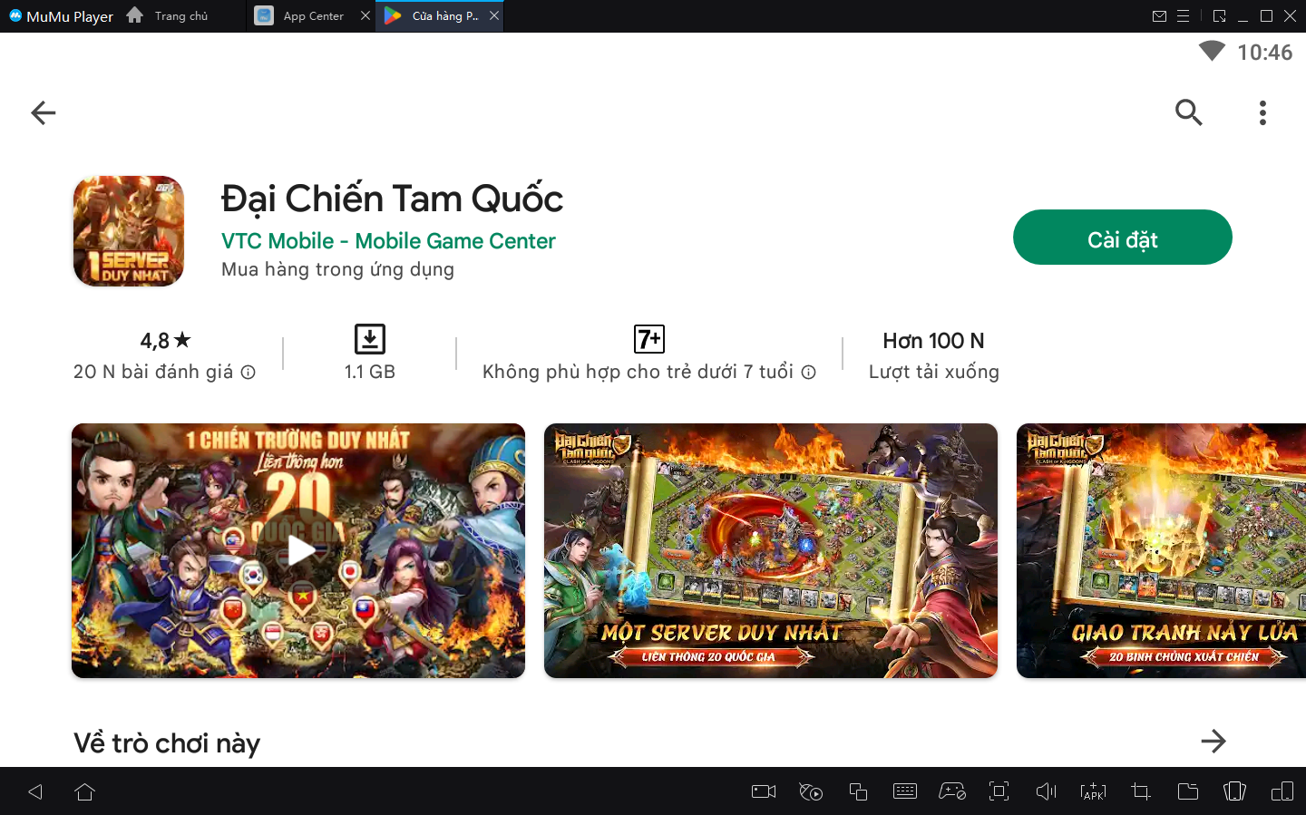 Để chơi các trò chơi di động yêu thích của bạn trên PC, giả lập MuMu Player là một lựa chọn rất tốt của bạn. Điểm hay nhất khi chơi Đại Chiến Tam Quốc giả lập trên PC bằng giả lập MuMu Player là nó khá dễ dàng. Hãy bắt đầu, hãy làm theo các bước đơn giản sau: