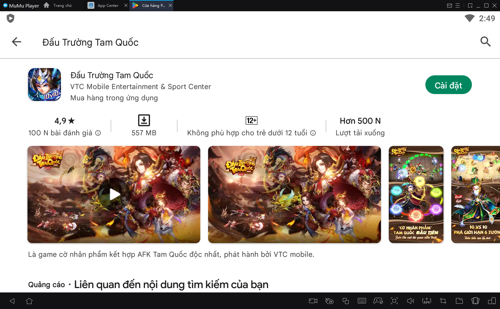 2.Tìm biểu tượng Google và đi vào App Center để tìm kiếm Đấu Trường Tam Quốc