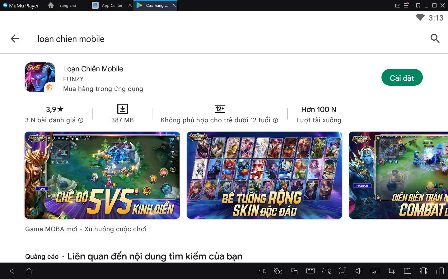 2.Tìm biểu tượng Google và đi vào App Center để tìm kiếm Loạn Chiến Mobile