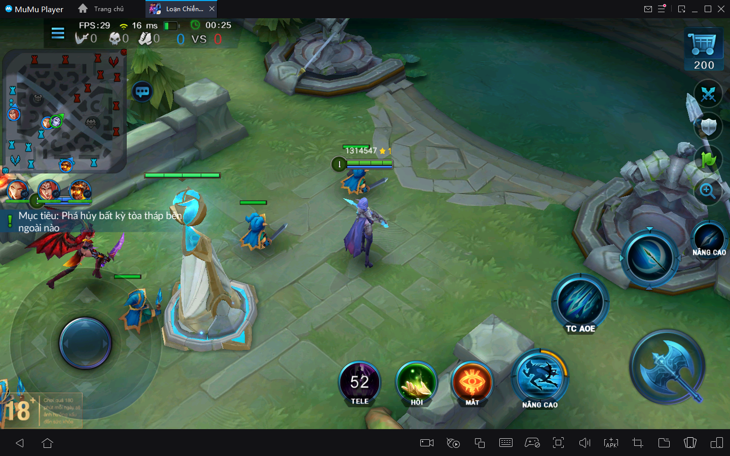 Phiên bản MuMu Player này mang đến cho bạn trải nghiệm chơi mượt với FPS cao trên PC trong Loạn Chiến Mobile. Ngoài ra, bạn có thể thiết lập các phương pháp điều khiển đặc biệt và chính xác trên bàn phím và chuột của mình.Giả lập MuMu Player rất tốt, ngay cả trên PC cấu hình thấp vẫn chạy mượt.