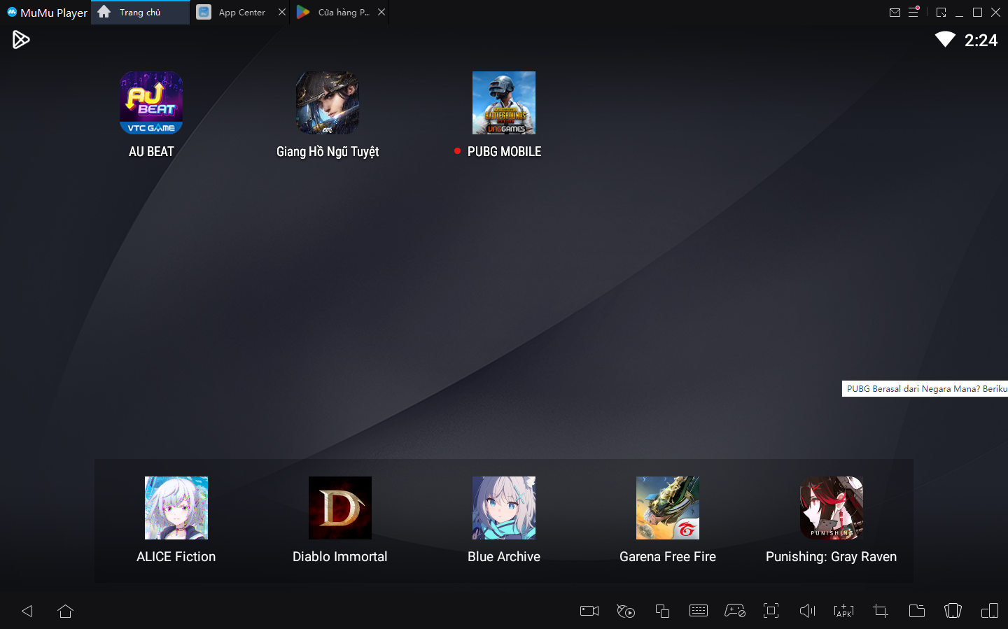 Để chơi các trò chơi di động yêu thích của bạn trên PC, giả lập MuMu Player là một lựa chọn rất tốt của bạn. Điểm hay nhất khi chơi PUBG MOBILE VN: BÍ MẬT CỔ ĐẠI giả lập trên PC bằng giả lập MuMu Player là nó khá dễ dàng. Hãy bắt đầu, hãy làm theo các bước đơn giản sau: