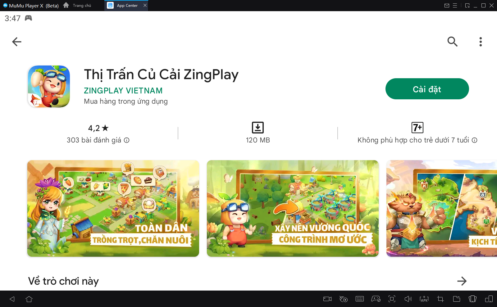 Trình giả lập MuMu Player mang đến cho bạn trải nghiệm tốt nhất để chơi game tuyệt vời này trên PC. Tải xuống dễ dàng, cài đặt và thiết lập hệ thống điều khiển cá nhân của bạn trên PC để chơi Thị Trấn Củ Cải chỉ khi bạn có trình giả lập như MuMu Player.