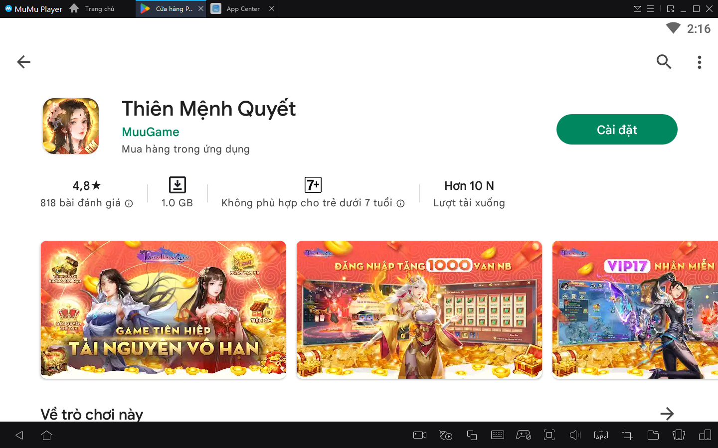 Hướng dẫn tải xuống và cài đặt Thiên Mệnh Quyết trên trình giả lập MuMu Player