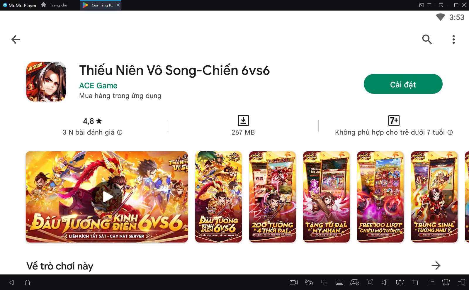 Để chơi các trò chơi di động yêu thích của bạn trên PC, giả lập MuMu Player là một lựa chọn rất tốt của bạn. Điểm hay nhất khi chơi Thiếu Niên Vô Song-Chiến 6vs6 giả lập trên PC bằng giả lập MuMu Player là nó khá dễ dàng. Hãy bắt đầu, hãy làm theo các bước đơn giản sau đây: