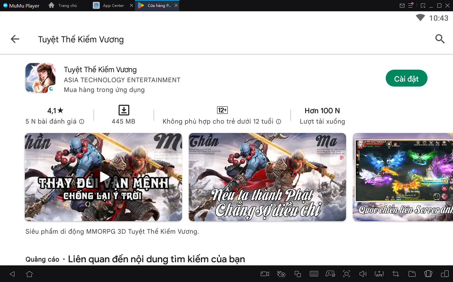 Để chơi các trò chơi di động yêu thích của bạn trên PC, giả lập MuMu Player là một lựa chọn rất tốt của bạn. Điểm hay nhất khi chơi Tuyệt Thế Kiếm Vương giả lập trên PC bằng giả lập MuMu Player là nó khá dễ dàng. Hãy bắt đầu, hãy làm theo các bước đơn giản sau:
